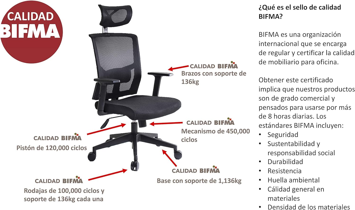 La silla tiene materiales un poco bajos de calidad, pero aguanta perfectamente a esta persona de 101kg.El instructivo es muy claro y fácil de entender, aunque está en blanco y negro, lo que dificulta un poco ver en donde van las tuercas, mas no es imposible verlo bien.Sin duda alguna, una inversión bien hecha para mi espalda.